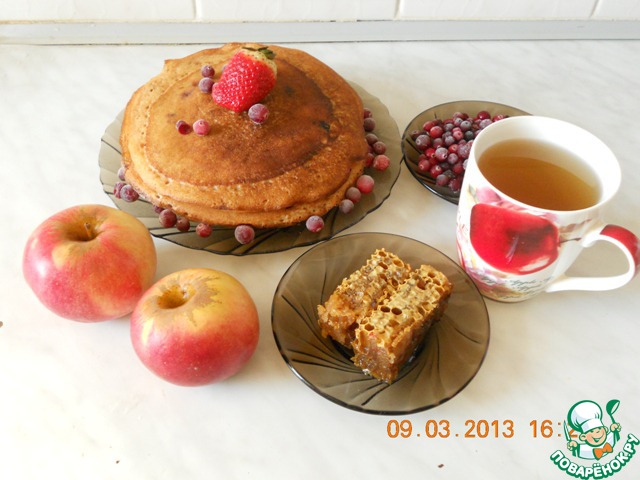 Украсить свежими ягодами и клубникой. Подавать к чаю с медом.