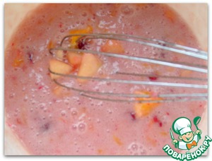 Взбиваем яйца, смешиваем с фруктово-ягодной смесью