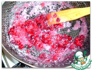 Пока выпекается кекс, готовим глазурь. Провариваем 1 горсть клюквы с 50 г сахара. Если еще добавить в глазурь 1 ст. л. коньяка... волшебно)