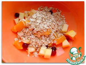 В смесь "Фрукты+ягоды" всыпаем горсть овсяных хлопьев. Пробовала с разными смесями, полезно, слов нет. Но чисто овсяные хлопья для меня - идеально)