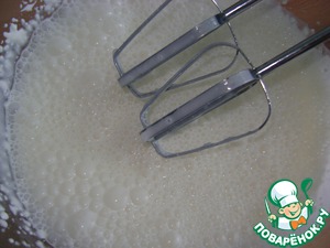 Смесь желатина вливаем в сахарно-сметанный крем, продолжая все взбивать.