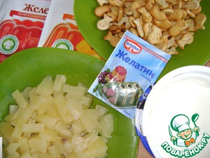 Ингредиенты, которые я использовала для приготовления торта. Ананасы порезать.