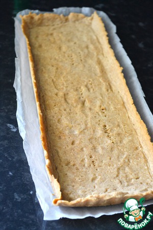 На тесто положить бумагу для выпечки (можно использовать ту, которую брали для раскатки теста). Посыпать горохом и выпекать около 15 минут при темп-ре 170 град. Затем убрать бумагу и горох и печь еще 5-7 минут.