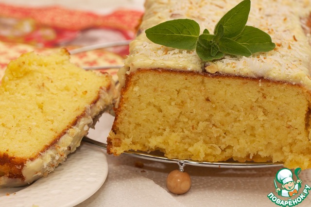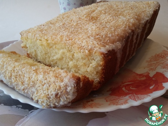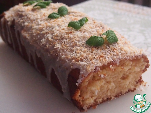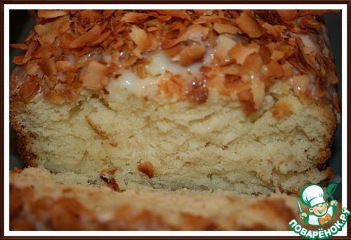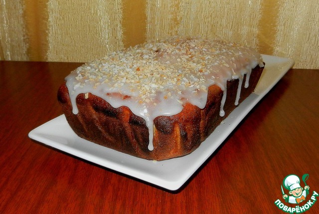 • 9. Смазать кекс глазурью и посыпать кокосом.