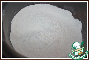 • 2. Муку, разрыхлитель и соль соединить и перемешать.