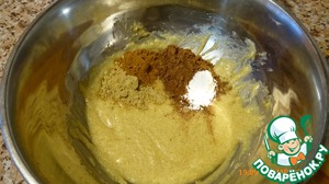 Введите разрыхлитель, молотый имбирь, корицу и какао-порошок. Сделайте массу однородной.
