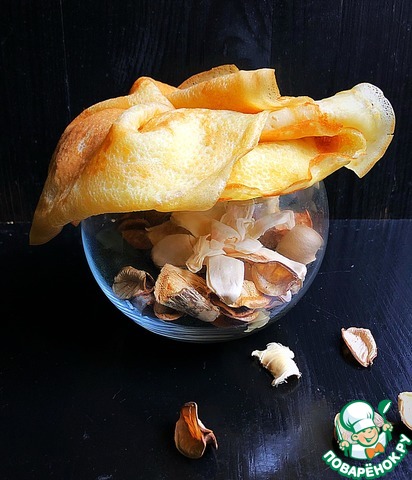 Выпекаем тоненькие блинчики. У меня на сковороде 24см получилось 9 шт.