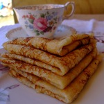Кукурузные блины с припёком: колбасой, курицей и зелёным луком. Блины прочно вошли в нашу жизнь. С ними связано много традиций. Знаете ли Вы, что по традиции блины надо есть руками? Если проткнёшь блин вилкой или разрежешь ножом - накличешь беду, т. к. блин символизирует солнце. В древней Руси человека, разрезавшего блин, забивали палками. Вот и осталось правило - брать блин руками. Можно его сворачивать, скручивать, но руками.