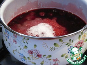 К вишням добавить сахар, воду, лимонный сок. Помешивая, довести до кипения.