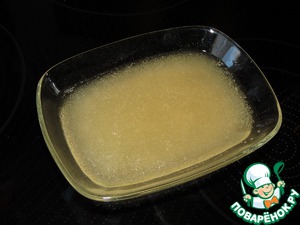 Бесцветное "Желе для торта" смешать с сахаром, ввести воду, перемешать и довести до кипения.