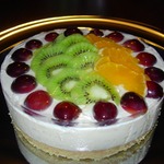 относится к поверхности чизкейка, а фото 4 шага изображает порезанные фрукты, ещё не положенные на чизкейк.