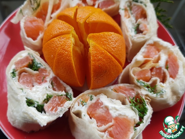 - Рулеты получаются вкусными со слабосоленой семгой.