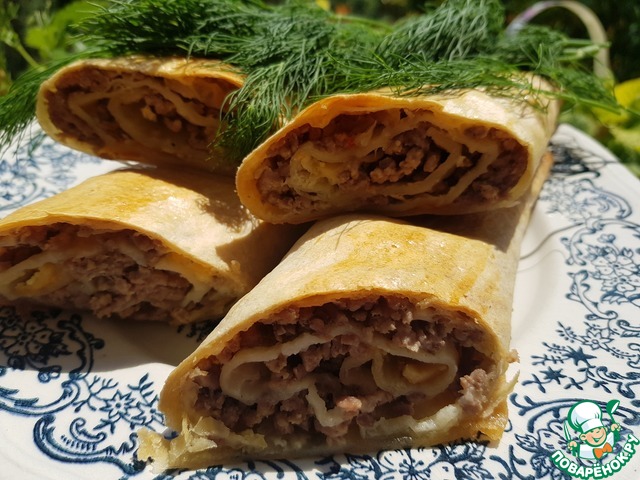 Рецепт «Рулеты из лаваша с мясной начинкой»: