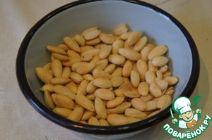 Миндаль залить кипятком на 2 минуты, затем слить, обдать холодной водой и очистить от кожицы. Подсушить в слабо нагретой духовке, не допуская подрумянивания. Затем смолоть не слишком мелко, чтобы оставались небольшие кусочки.