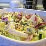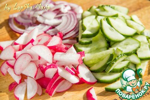 Редис - один самых ранних овощей, он по-весеннему яркий и сочный! Хоть у нас в Петербурге погода вполне ещё зимняя, весну можно устроить себе на тарелке, заодно и подкрепиться витаминами, которых так не хватало зимой. Предлагаю вам попробовать очень вкусный, солнечный и легкий салат.