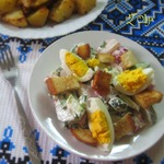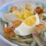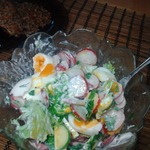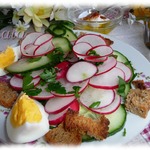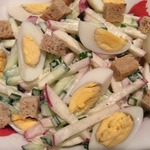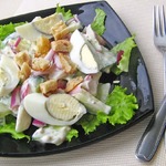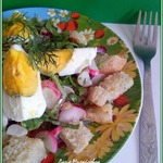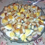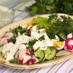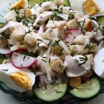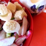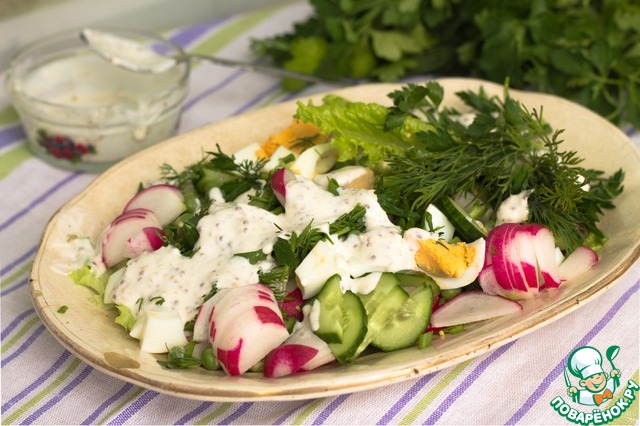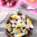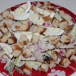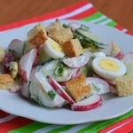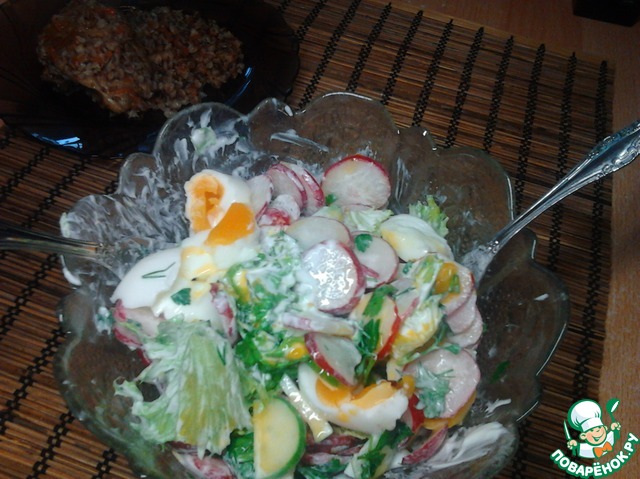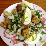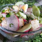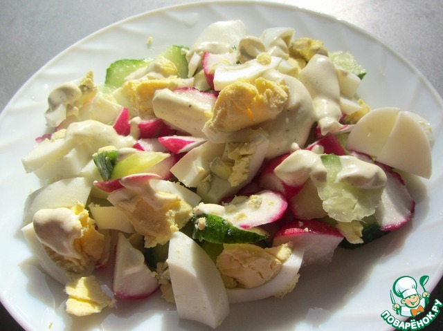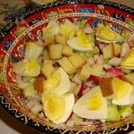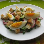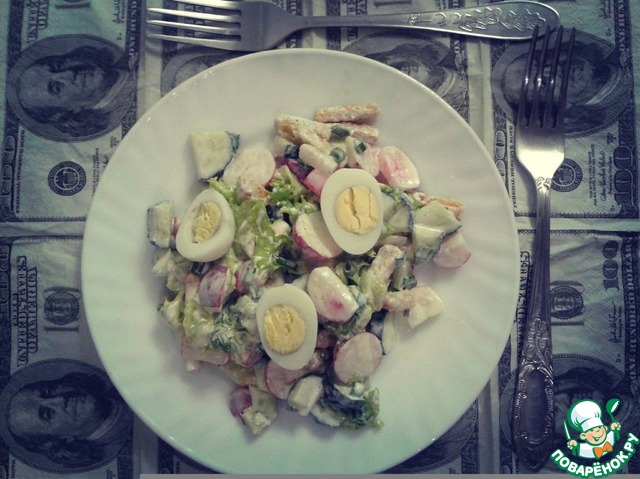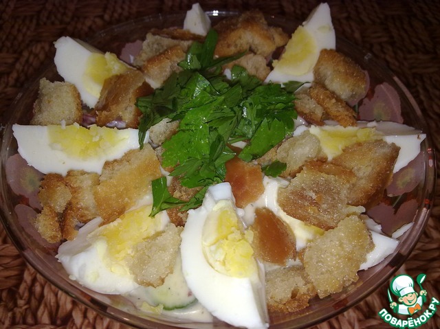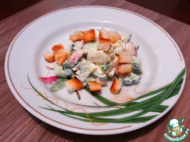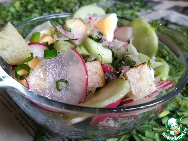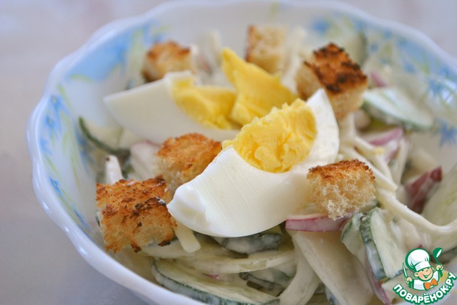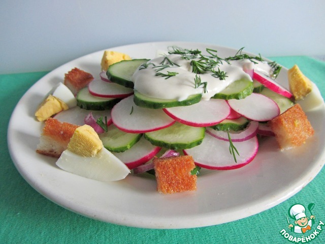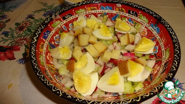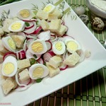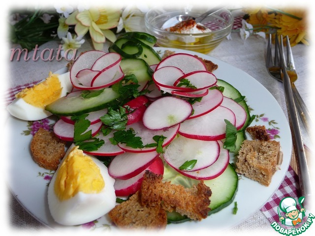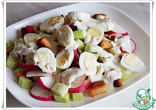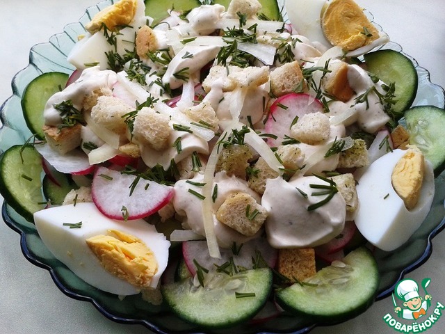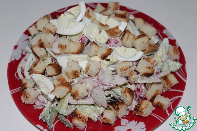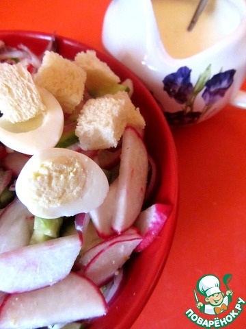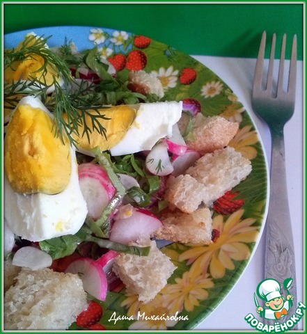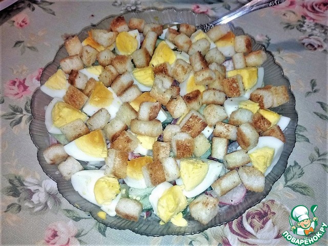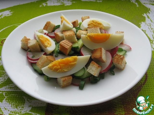 Рецепт «Салат с редисом, яйцом и крутонами»: