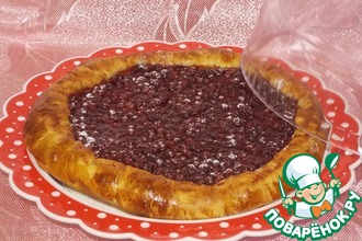 Форму смазать маслом, застелить пергаментом. Выложить слоеное тесто, сформировать бортики.