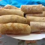 Сворачиваем блины в рулет, перекладываем на блюдо или доску, ставим в холодильник для пропитывания на 1-2 часа.