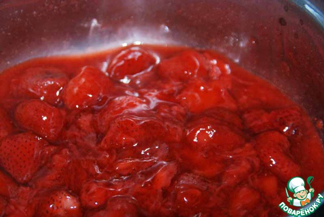 Я брала замороженную клубнику, дала ей оттаять, слила сок.