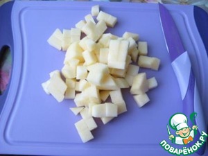 Яблоки очистить, нарезать кубиками и сбрызнуть лимонным соком.