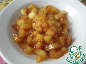 Добавить яблоки и карамелизировать их в течение 3-4 минут, помешивая. Огонь должен быть сильным.
