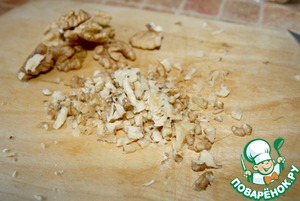 • Грецкие орехи мелко порубить. Добавить к курице.