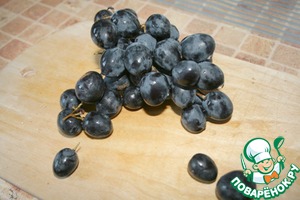 • Виноград хорошо помыть, высушить. Ягоды оборвать и высыпать к курице и орехам.