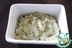 Тут все просто масло взбить с листьями базилика солью и перцем. Далее отправить в холодильник. -