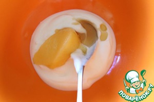 Приготовим заправку к салату. И опять все очень просто смешиваем йогурт и мед и лимонный курд. Хватит пару столовых ложек курда, но тут на любителя добавьте сначала одну перемешайте и попробуйте, если покажется мало добавляйте по вашему вкусу!