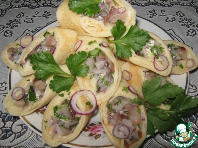 Рецепт «Тоненькие блинчики с селёдкой»: