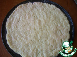 Мокрыми руками распределить тесто по дну формы. Выпекать в разогретой до 180 градусов духовке до золотистой корочки. Моя духовка оставляет желать лучшего, поэтому мне пришлось коржи переворачивать, чтобы они зарумянились с обеих сторон.