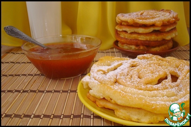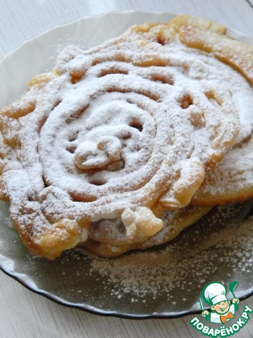 Crepe frisee. Красивые, необычные, вкусные, воздушные, чем-то похожие на хворост французские блинчики. Готовятся они очень легко и "улетают" очень быстро. Смело увеличивайте пропорции, поскольку количество ингредиентов дано всего на 4 блина. Попробуйте обязательно! С масленицей Вас! ;)) P.S.: Спасибо Виктории (passion1963) за рецепт! :)