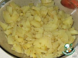 Все ингредиенты порезать мелкими кубиками и положить в разные тарелочки.