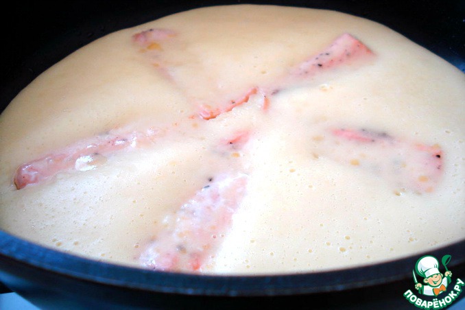 Заливаем тестом и жарим на небольшом огне 5-7мин.