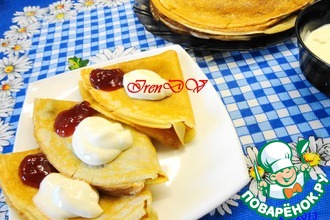 Долго же я "боролась" с этими блинами! Думала до конца масляной недели не успею, ан нет! Блины получились нежные, воздушные! За рецепт спасибо Ирине Осокиной, очень понравился. Ирочка, урааа, у меня получились!
