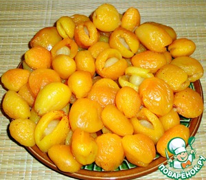 Замочила курагу в соке из персиков и добавила капельку белого столового вина. Такого, как марципан. У нас нет, и я решила заменить грецким орехом и миндалем. Из 10-ти замоченных ягод, дошли до дела только 6, больно вкусная курага оказалась размоченная в таком сиропе