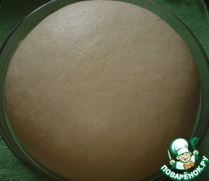 Замесить дрожжевое тесто и дать ему увеличиться в два раза, сделать обминку и дать подняться во второй раз.