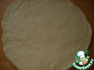 Тесто раскатать в виде круглой лепешки и перенести на противень или в форму, предварительно смазав подсолнечным маслом