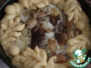 (Можно приготовить начинку и с сухими грибами, только предварительно их отварить, откинуть на дуршлаг, тщательно промыть, порубить ножом)