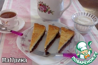 Раскатать в тонкий пласт последнюю часть теста и выложить начинку. У меня была начинка из тёртого яблока с сахаром.