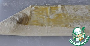 Для шоколадных треугольников я использую два листа фило, разрезаю их на две полоски.