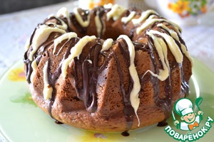Вынуть из формы. Охладить можно посыпать сахарной пудрой, а можно нанести полоски растопленным шоколадом: темным и белым.