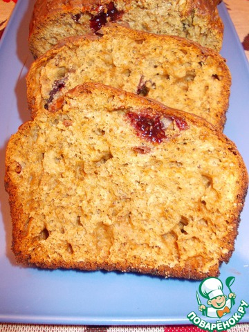 Сегодня в тесто добавляла варенье из красной смородины, молотый миндаль, и заменила 0,5 стакана муки на манную крупу (ради эксперимента, и честно сказать крупу нужно было пристроить, не люблю когда пригоршня остается). Кекс получился румяный, ароматный с приятной кислинкой от варенья. Верх не украшала, т.к. для домашнего чаепития и так вкусно без добавочных калорий. Муж сказал "какой-то новый вкус!"