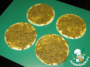 Равномерно намазать заготовки из теста приготовленным соусом песто.
