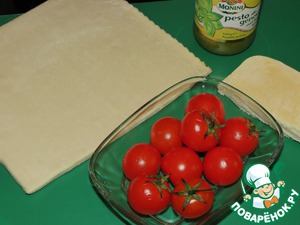 Ингредиенты для «Слойки с черри и соусом песто»: