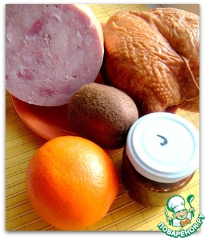Яркий салат,любимое сочетание фруктов с мясом,только на последнем фото кажется,что салат вы аджикой так и не заправили...