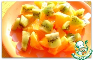 • Также кубиками нарезаем очищенные апельсин и киви