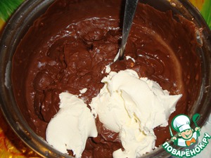 Добавить сливочный сыр (Маскарпоне можно выложить весь из двух коробок), влить коньяк (можно любой алкогольный напиток) и шепотку перца чили.