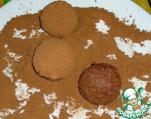 Скатать шарики одного размера и обвалять в какао - порошке.