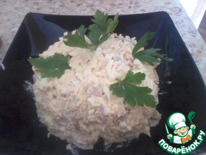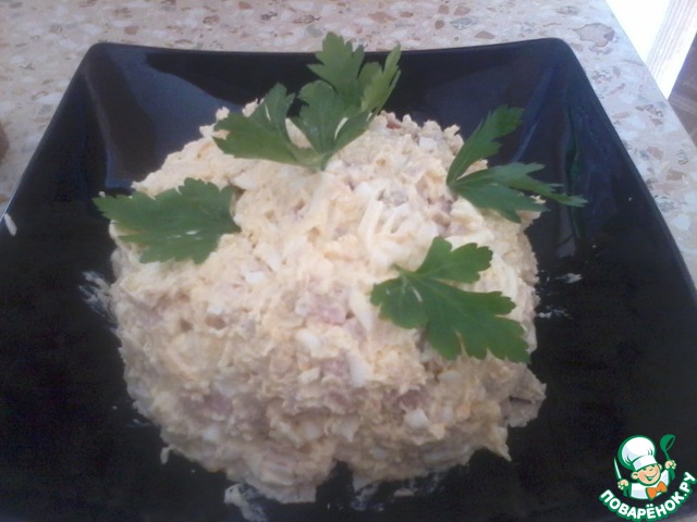 Получился вкусный и сытный рыбный салатик. Приятного аппетита
